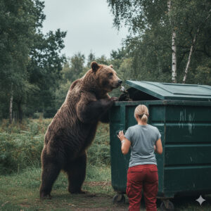 The she-bear stood next to the garbage bin and pounded on the lid with her heavy paws: I opened the bin and froze…