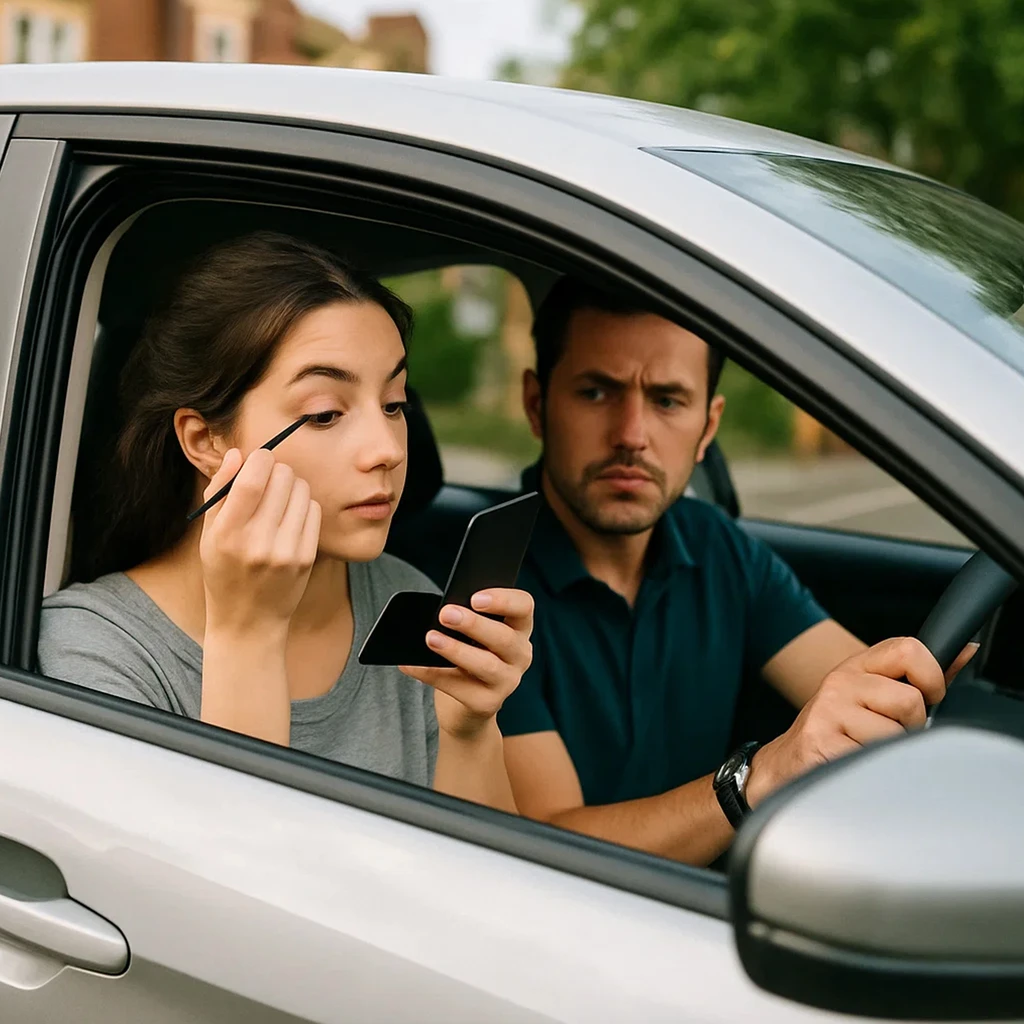 POOR YOUNG WOMAN DOES MAKEUP ON CAR WINDOW WITHOUT REALIZING THAT SOMEONE IS WATCHING HER A POOR GIRL WAS PUTTING ON MAKEUP AT…