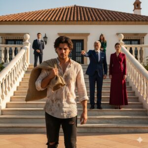 La última maleta aterrizó con fuerza en el polvoriento suelo fuera de la casa, justo cuando la puerta se cerró con un ruido…