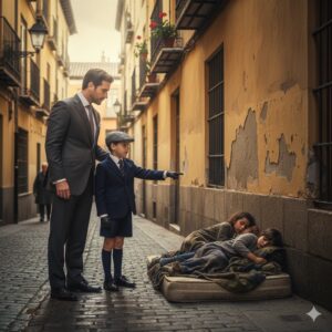 “Papá, esos dos niños durmiendo entre la basura se parecen igualito a mí”, dijo Pedro, señalando a los pequeños que dormían acurrucados sobre…