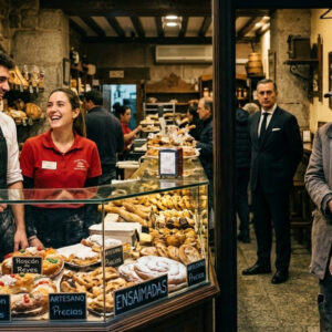 Un hombre con la ropa rasgada y la barba descuidada entró en una pastelería de lujo en Madrid. Se acercó al mostrador con…