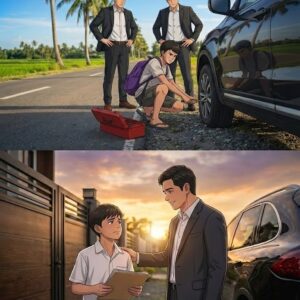 BATANG LALAKI TUMULONG SA MILYONARYO NA MAY FLAT NA GULONG—NAGBAGO ANG BUHAY NIYA PAGKATAPOS NITO/th