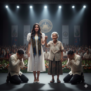 Araw ng pagtatapos sa isang prestihiyosong unibersidad. Punô ang gymnasium ng mga magagarang kasuotan. Ang mga magulang ay naka-barong at filipiniana, amoy mamahalin…