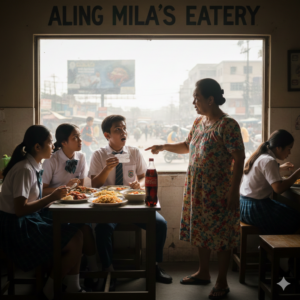Tanghaling tapat sa “Aling Mila’s Eatery.” Puno ng tao, karamihan ay mga estudyante galing sa katabing unibersidad at mga trabahador mula sa construction…