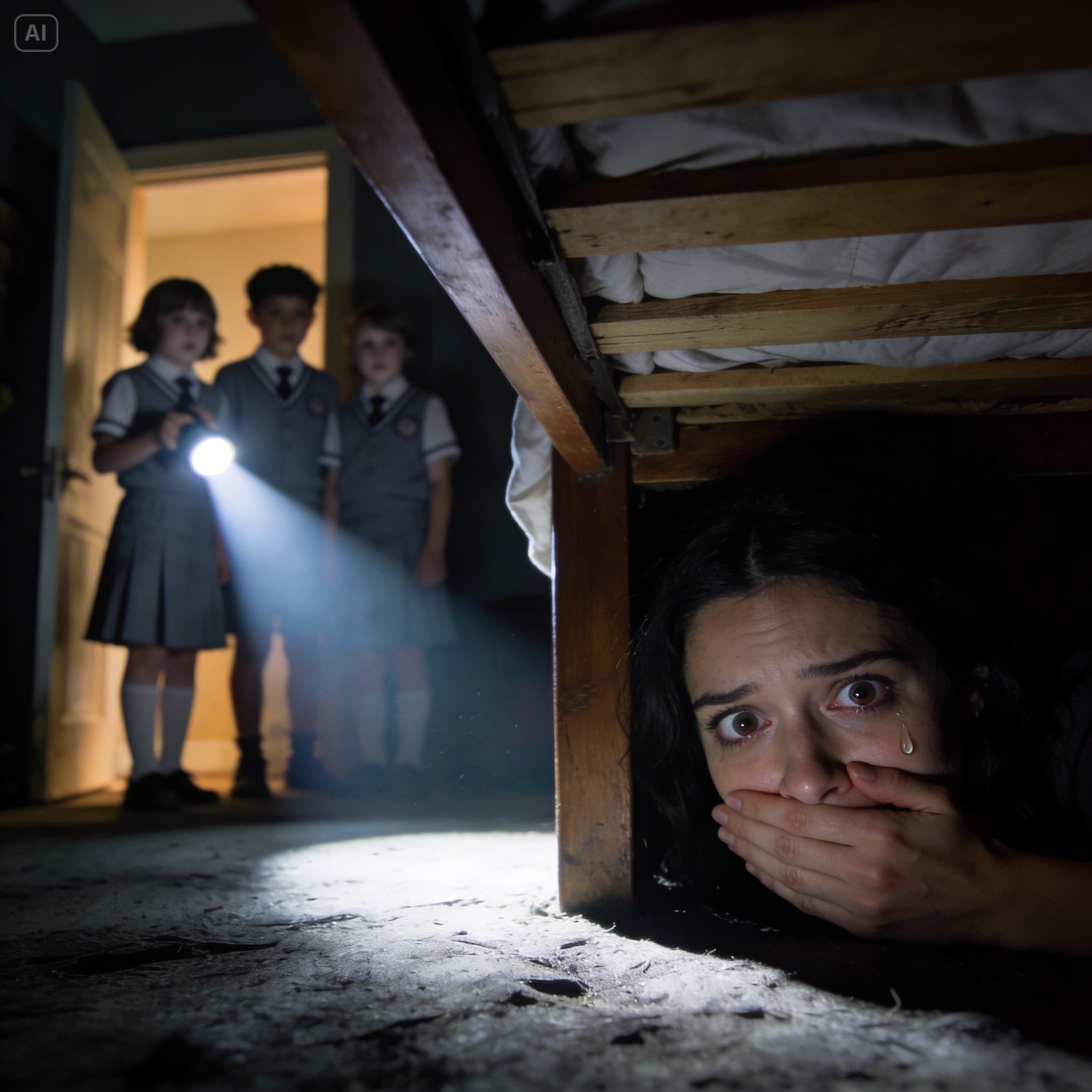 Me agaché en el suelo, con el estómago apretado, y me deslicé debajo de la cama.