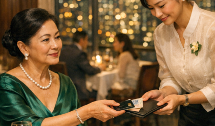 Pagkatapos ng mabigat na “Opo… ako nga po.”, parang huminto ang buong fine-dining restaurant sa isang hininga. Yung malayong piano sa lounge, biglang naging tunog na parang nasa kabilang mundo. Yung mga baso, kubyertos, at bulungan—lahat nabawasan ng lakas, parang…