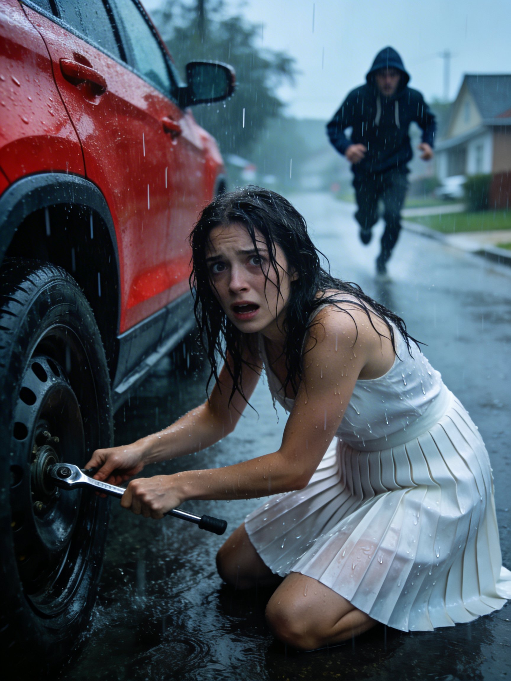 Andrés parked without hesitation, took his jack from the trunk, and crouched down beside the woman’s car.